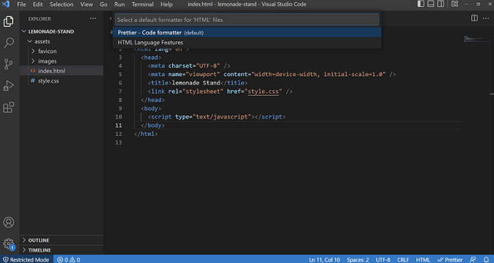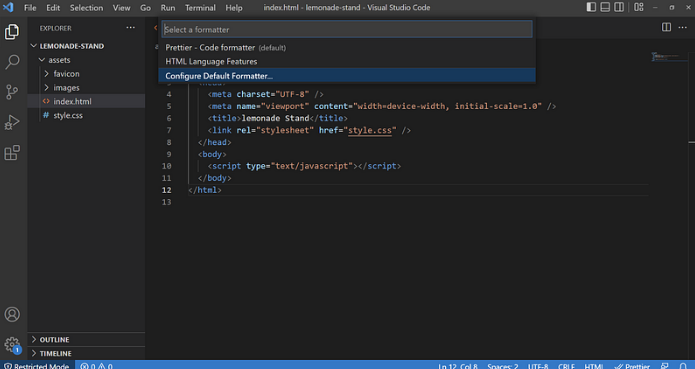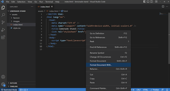 Open VS Code → Navigate to Extensions → Search for Prettier → Install the extension.
